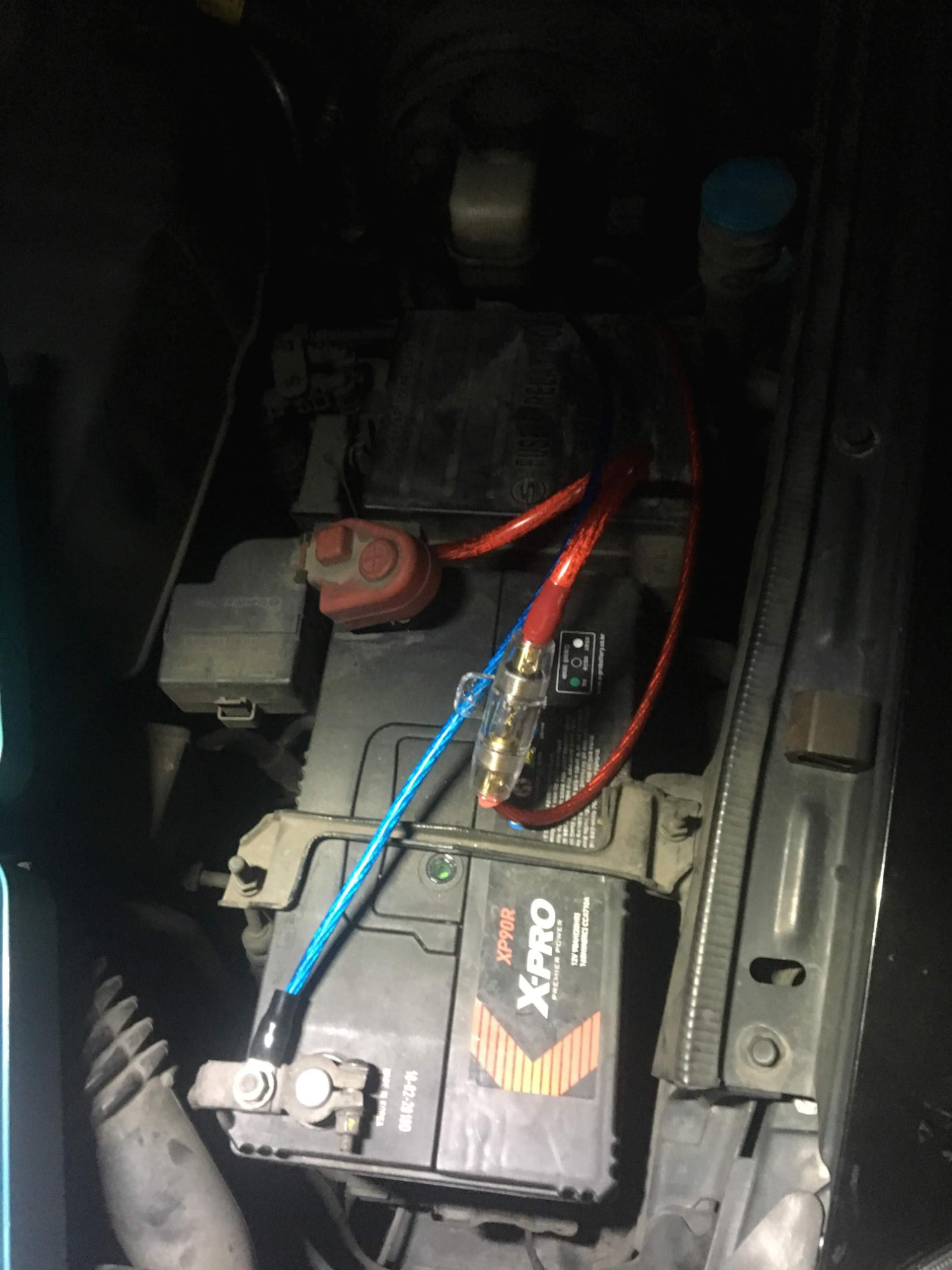 설치는 본네트 열고 베터리에서 출발해서 차량 내부로 진입시켜야 하는데 핸들 아래를 보면 이미 본네트에서 휴즈 박스로 들어오는 통로가 있다. 그 옆을 통과시키면 된다.
